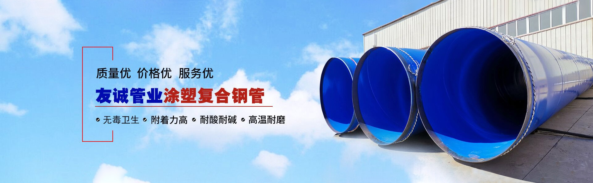 滄州友誠(chéng)管業(yè)有限公司是一家專(zhuān)業(yè)從事生產(chǎn)防腐涂塑管道及管件于一體的大型企業(yè)。公司注冊(cè)資金8600萬(wàn)元,位于中國(guó)管道生產(chǎn)基地—河北鹽山縣,近靠京滬高速、榮烏高速、黃石高速30公里,高鐵滄州西站40公里,天津國(guó)際機(jī)場(chǎng)、濟(jì)南遙墻機(jī)場(chǎng)150公里,為客戶來(lái)訪及業(yè)務(wù)發(fā)展提供了便利的交通條件。 鋼管系列:螺旋鋼管、無(wú)縫鋼管、ERW直縫焊管、JCOE埋弧焊直縫鋼管、熱鍍鋅鋼管。 涂塑系列:內(nèi)外涂塑鋼管、涂塑復(fù)合鋼…… 了解更多